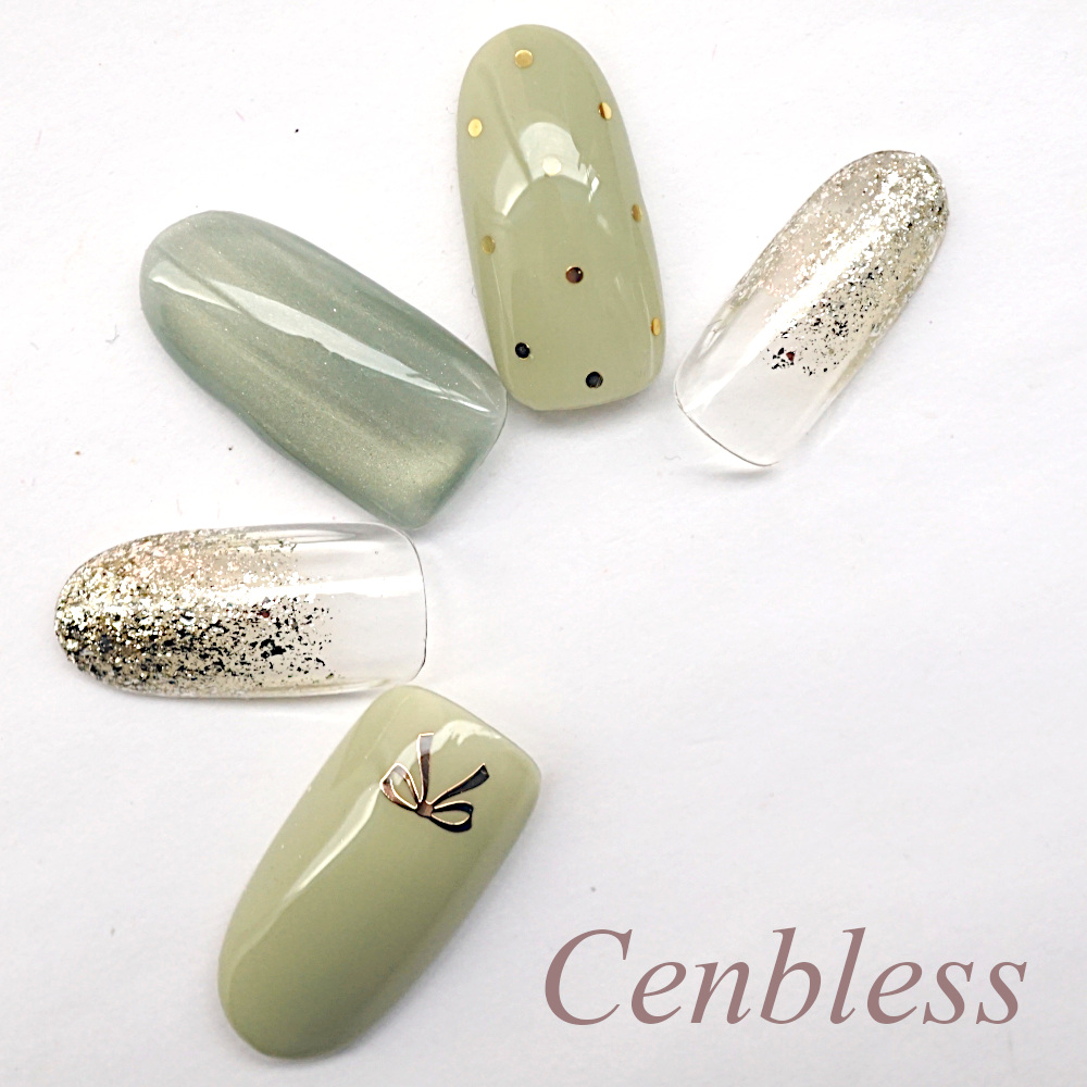 春らしいライトグリーンにゴールドドットとリボンを合わせた、大人可愛い仕上がり♪